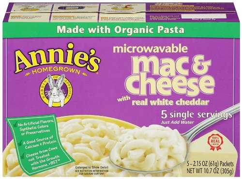 You asked for it - we made it! Annie's Micro Mac (as we like to call it) is perfect for a quick snack or meal. Just add water and microwave the pasta and you'll get a healthy meal fit for one! We've made Annie's Micro Mac with certified organic pasta and real white cheddar cheese. Just pop one of the five Micro Mac pouches into your bag and you've got a quick lunch at work in just 3 minutes. Micro Mac is also the perfect size for a child's meal.