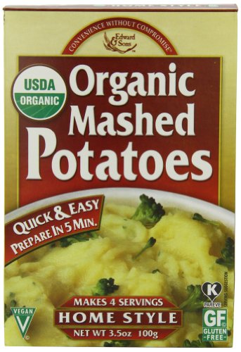Edward & Sons Home Style Organic Mashed Potatoes are gluten free, vegan and absolutely delicious! They are incredibly easy and quick to prepare. Edward & Sons™ Home Style Organic Mashed Potatoes deliver the rich, comforting taste of fluffy mashed potatoes in about 4 minutes. This is true "convenience without compromise."