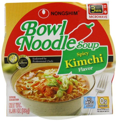 Nongshim Bowl Noodle Soup, Spicy Kimchi Flavor, 3.03-Ounce (Pack of 12)